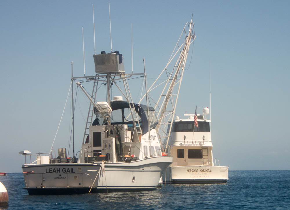 But today, and possible more so in Southern California in ealruy fall,,these boats are also used for tagging migrating whales. Man at the end of the bow boom with a long pole and a suction cup with a transponder attached.