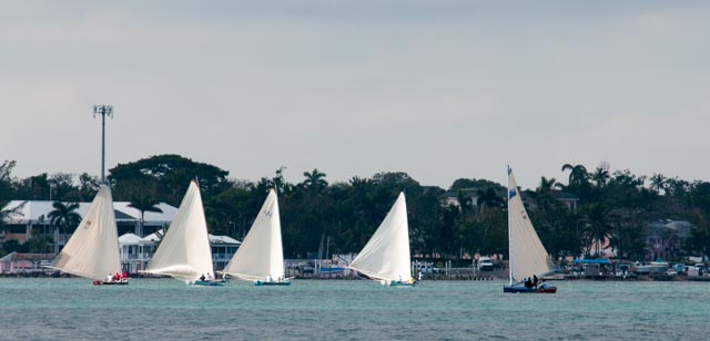The sails are huge in relation to the size of the boat, and the booms extend way back. past the transom
