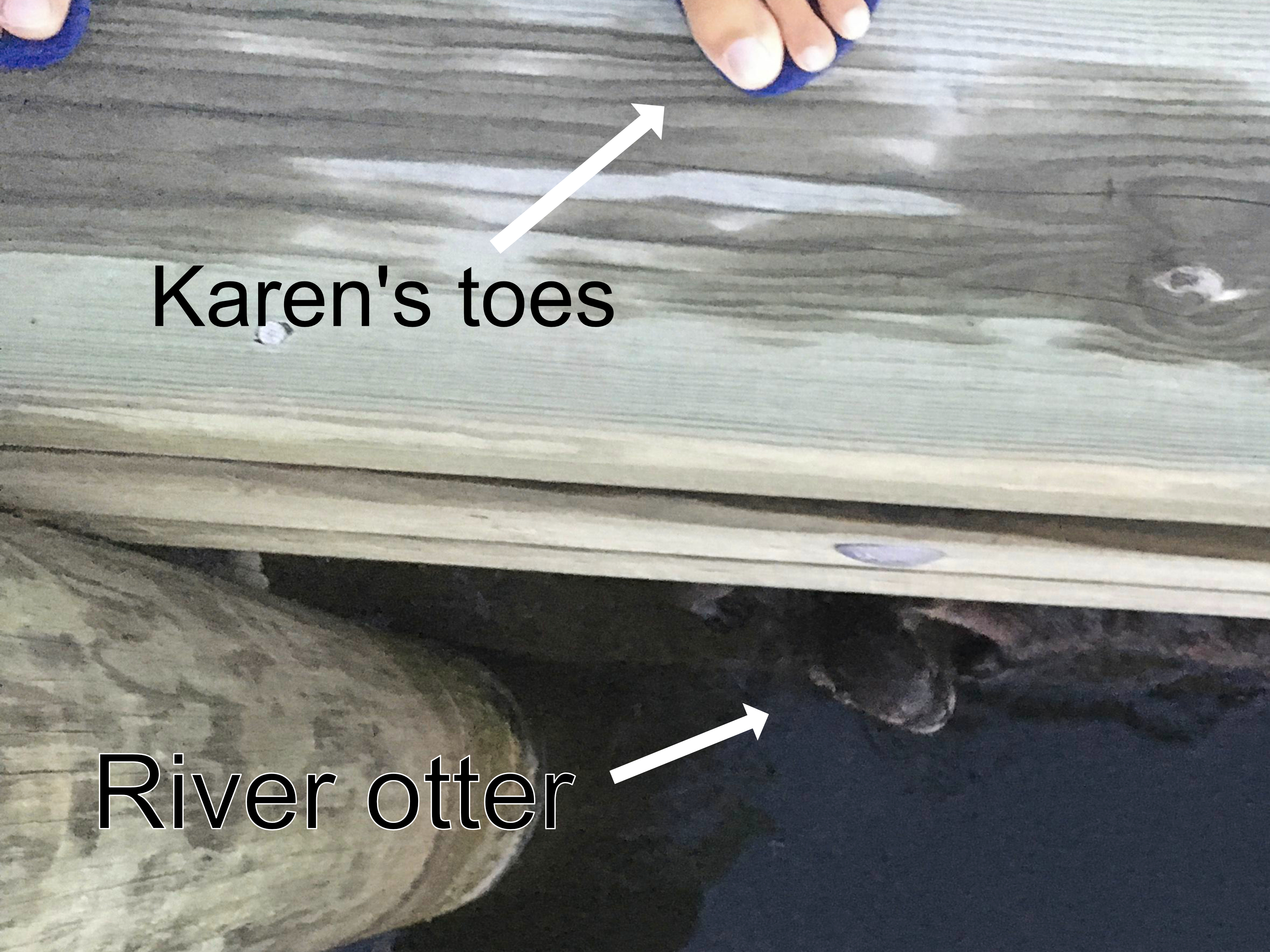 In addition to her other many boat maintenance projects, Karen has been working on an Art Project entitled, Wildlife with Toes. Last year she got a picture of one of the local river otters right at the marina bulkhead where she was standing.