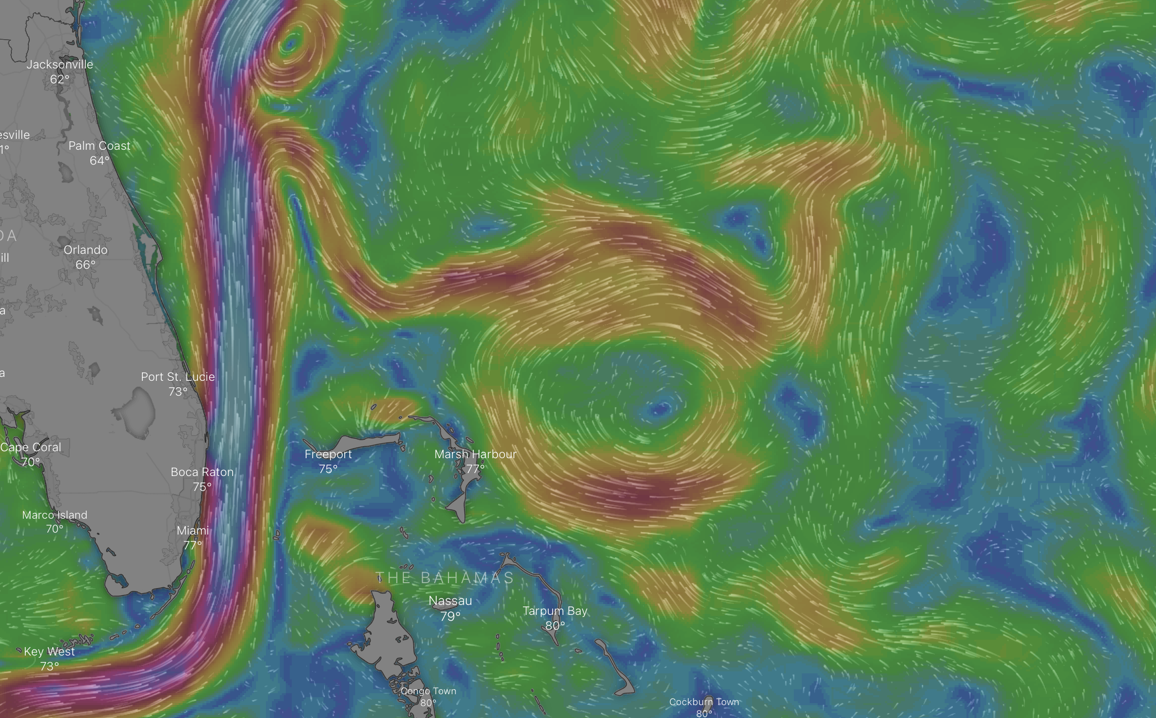 Here’s the thing: if you are on the Florida coast between Port St Lucie and the Keys you don’t need a crystal ball or a professional meteorologist to tell what conditions in the Gulf Stream are like, you go down to the beach and you LOOK! See for yourself. It’s right there! You can see it!