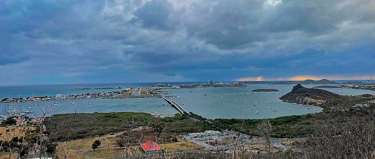The commercial hub of the northeast Caribbean is the unusual divided island of Saint Martin. 60% is an overseas Department of France, and the reminder is a country under the Dutch Crown, and called “Sint Maarten”. Similar in status to one of the British Commonwealths, except the “homeland” is the Netherlands. The border here is, and always has been for hundreds of years, invisible. No signs, no border guards. People live in one country and work and shop in the other.
