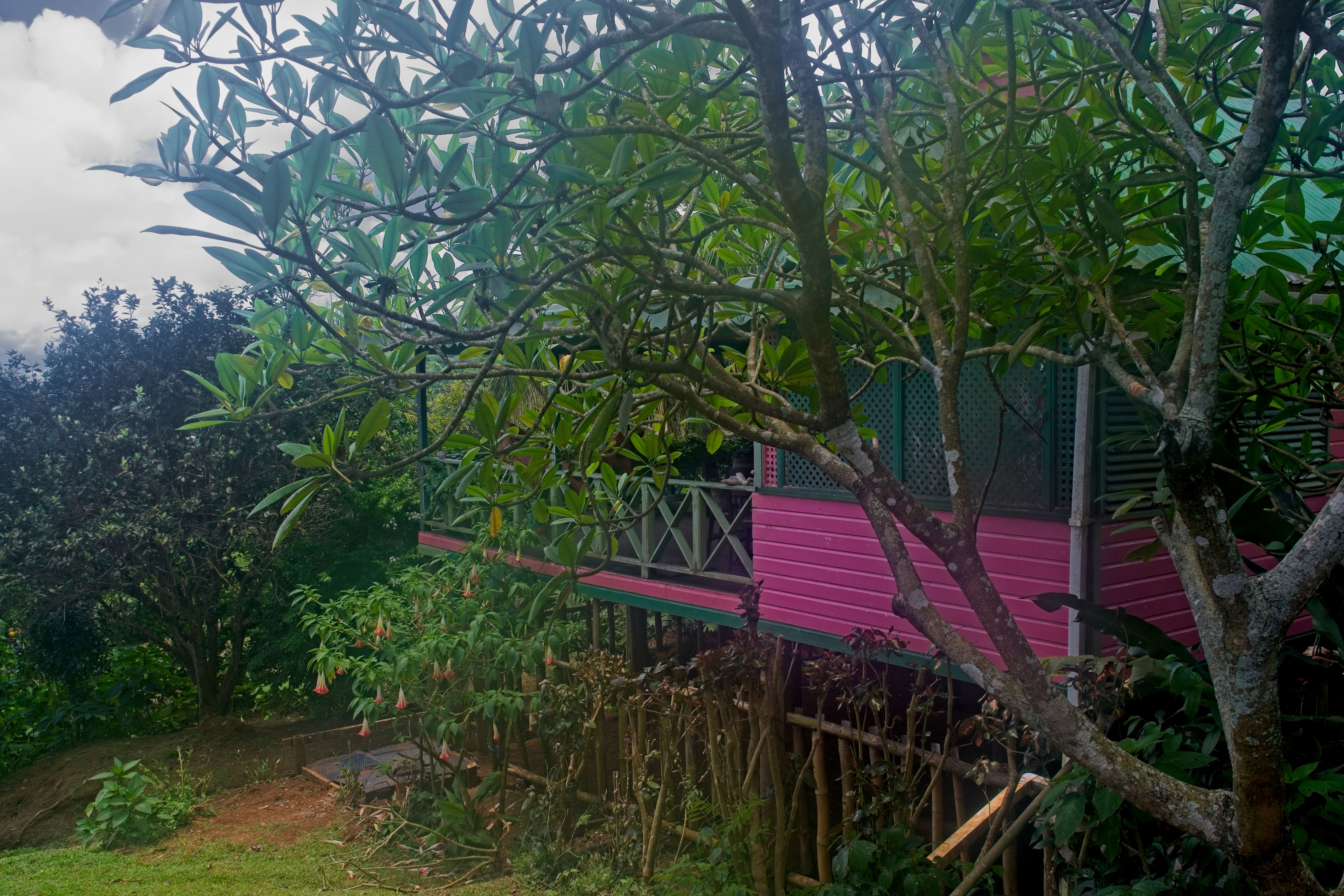 The “farm house” is a particularly tropical design. There are shutters, but no glass in the windows. Cold is not an issue in this climate, and at this altitude, the valley below funnels the tradewinds up and through the house. Even this close to the equator, air conditioning is not needed.