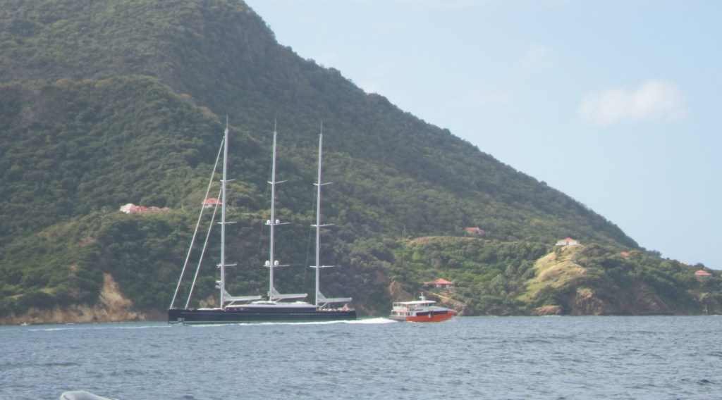Our trip up from Martinique was about 15 hours, and was—mostly—uneventful. It varied from near calm in the lee of Martinique’s Mount Pele and the mountainous rainforests of Dominica, to howling winds of 30 knots in parts of the passages between the islands. We had some minor issues with the engine, that will hopefully be easily put to rights.