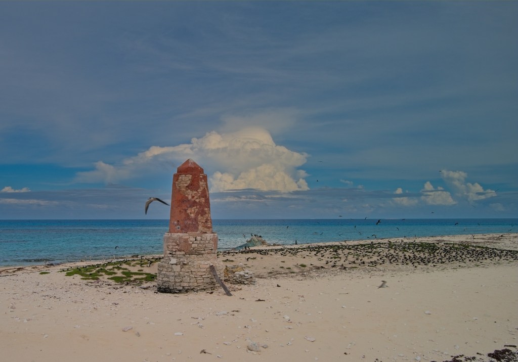 We do however have some more photos of Hogsty Reef. At Northwest Cay, there is an unusual stone tower.
