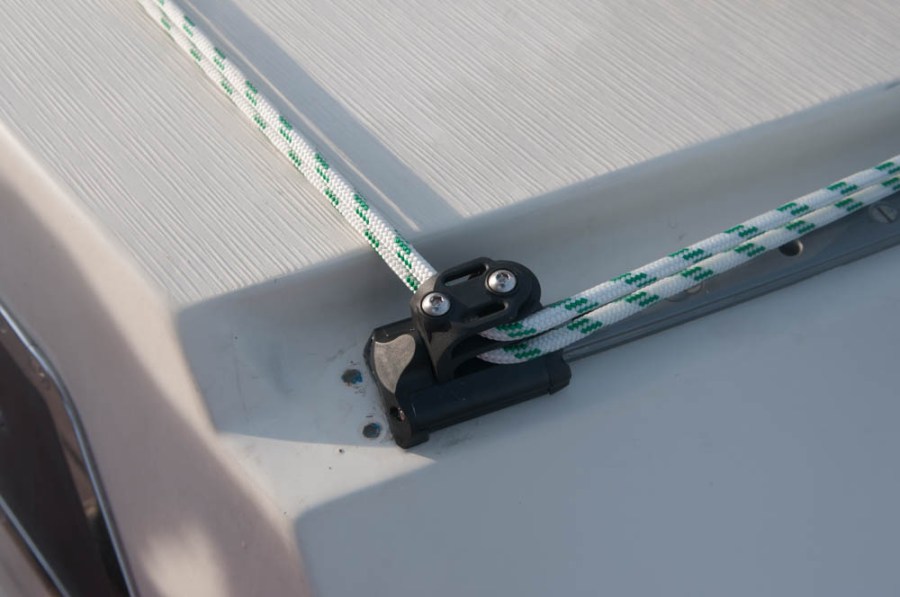 Port side double block. You can see the where the original holes that the end stops were bolted into and are now filled with epoxy. The final cosmetic repair to match these in with the gelcoat is on the to-do list.