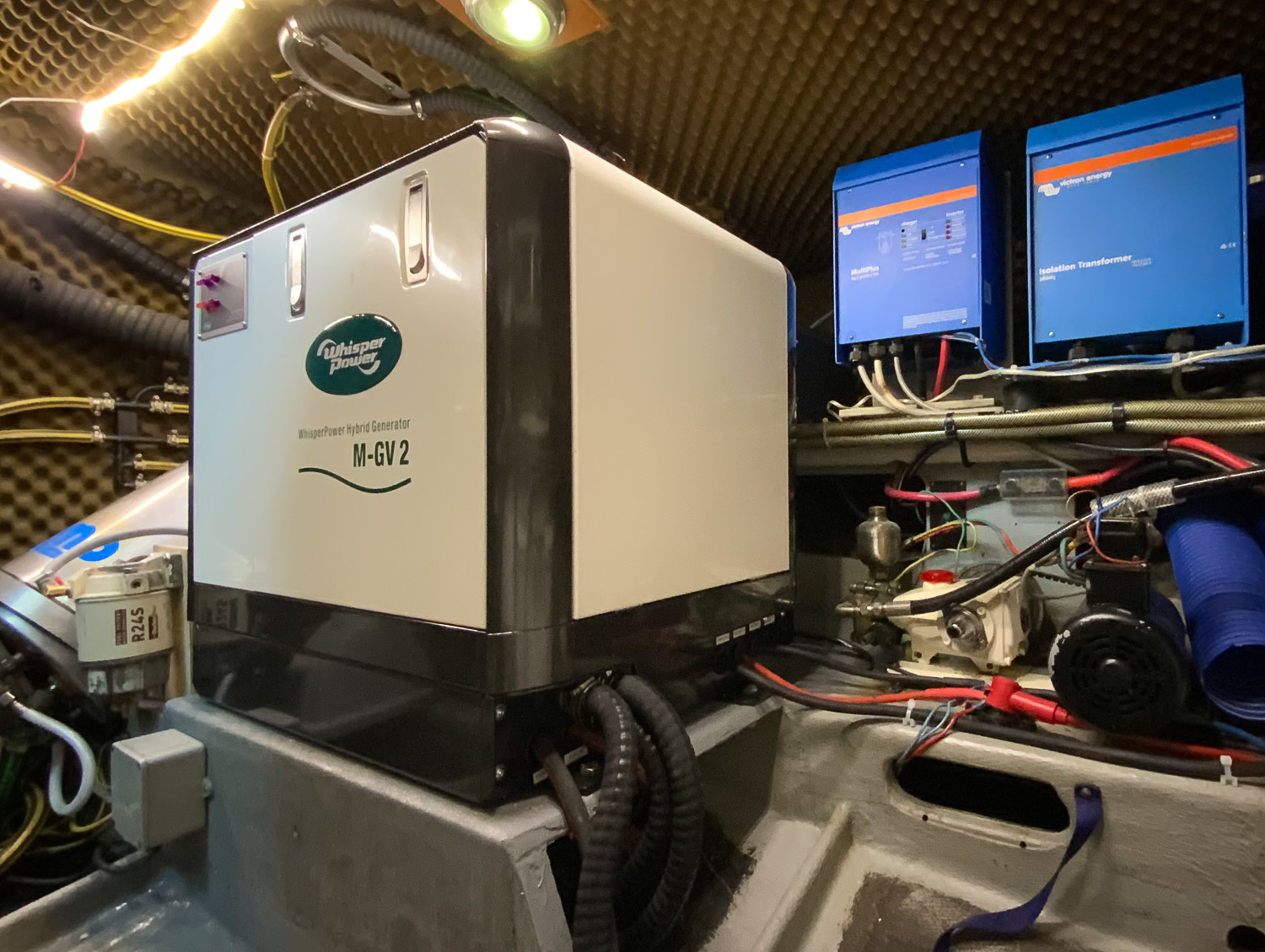 We chose one of their marine models, an M-GV-2 which can output 150 amps of battery charging current. At 132kg (290lbs) it is about half the weight of the Onan MDKD, and is significantly smaller in overall size.