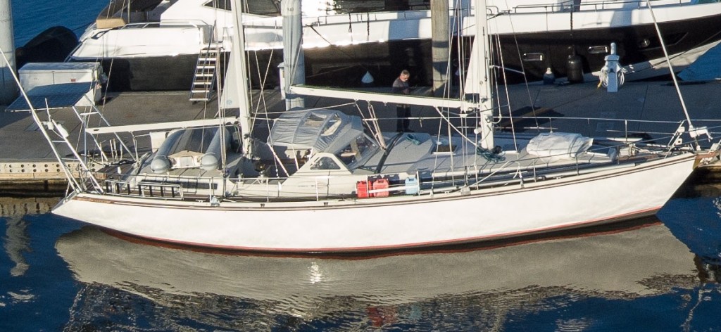 Measurements are great, and they are a necessary start. But really being sure how such a complex three-dimensional shape will fit and interact with the deck of the boat is a challenge. We were very lucky that we had another Amel Super Maramu pull in next to us who had a dinghy of the exact size and shape we were looking at stored on their aft deck. Our conclusion was that it wasn’t the most elegant arrangement, but it was fully functional, and we’d have no problem with moving around it. A compromise, but one we were happy with.