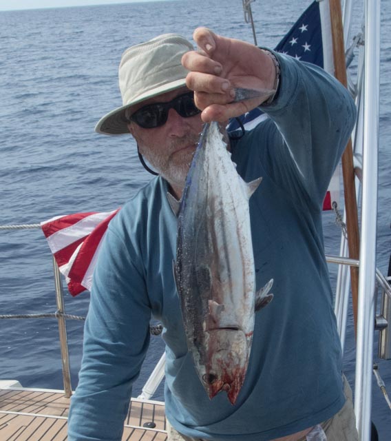 A small Skipjack Tuna. We have found them to be delicious–but only when fresh or recently fresh frozen. After a couple of weeks in the freezer, the meat is unappetizing.
